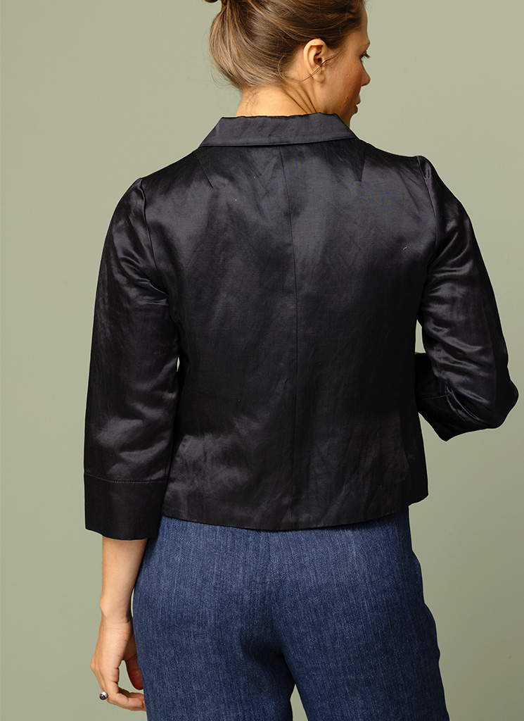 Shiny, festive blazer with slightly shorter sleeves. Pockets in seams at the front.