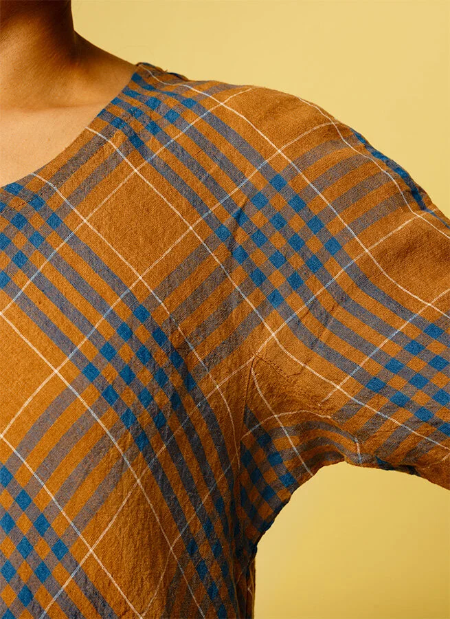 AMIKA linneklänning Koppar Ruta