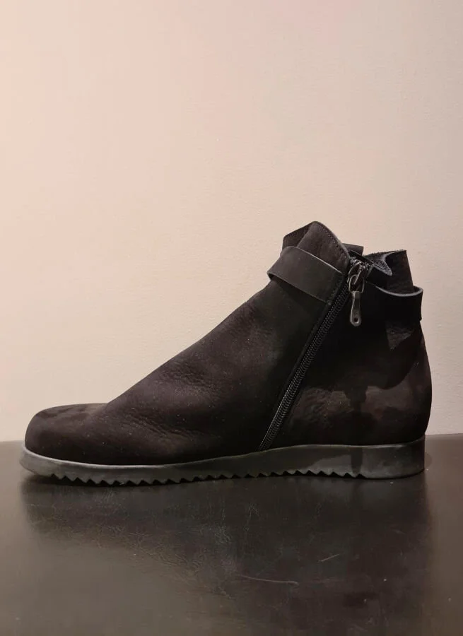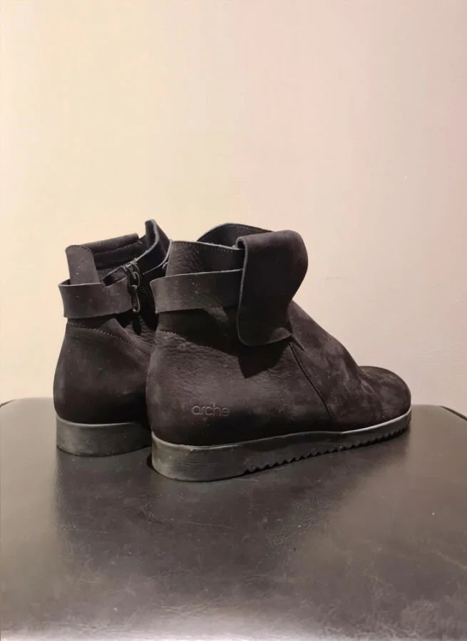 Svarta boots i nubuck från Arche. Skorna har skönt sviktande sulor i naturlatex och blixtlås på utsidan.