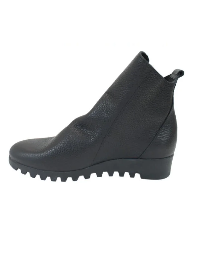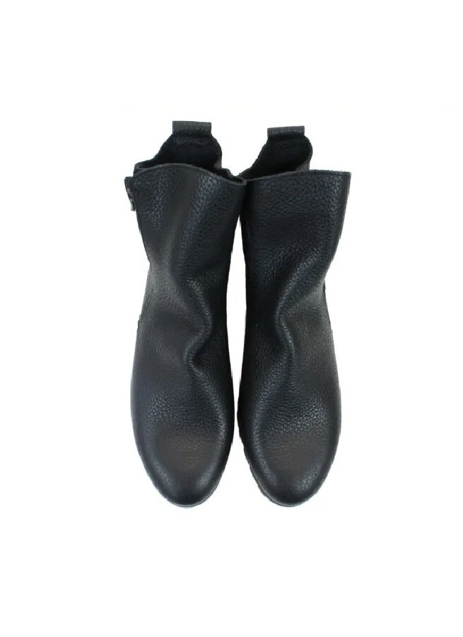 Svarta skinnboots med skönt sviktande sulor i naturlatex och blixtlås på utsidan.