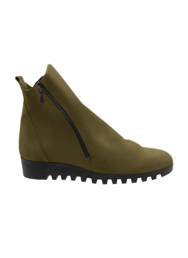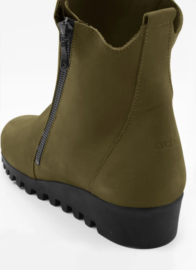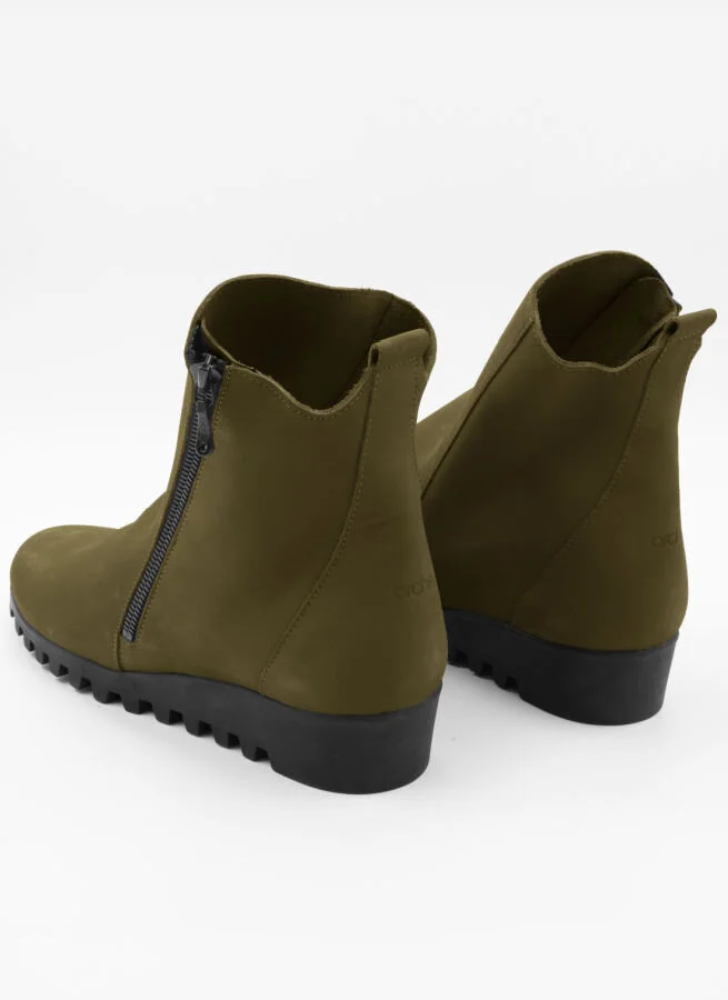 Gröna boots i nubuck med skönt sviktande sulor i naturlatex och blixtlås på utsidan.