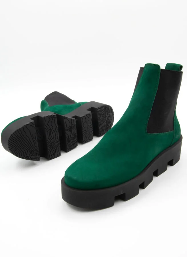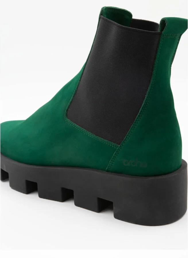 Gröna boots från Arche i nubuck och med resår på sidorna. Skorna har skönt sviktande sulor i naturlatex, 4 cm höga.