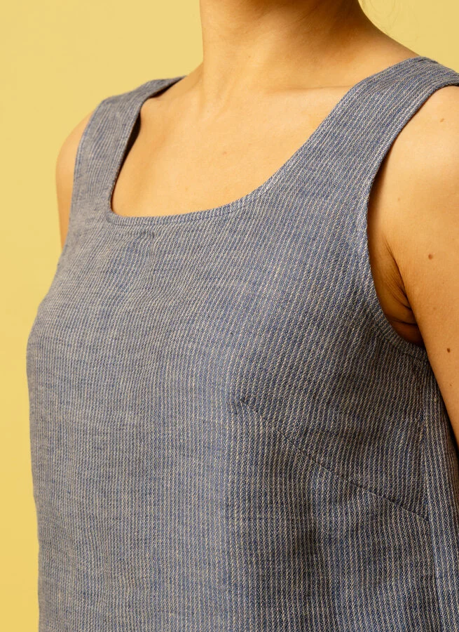 Linnet består av 100% vävt lin, ett fantastiskt naturligt och miljövänligt material som låter din kropp andas. Linet har också en vacker lyster och oregelbundenhet i sin väv och blir bara vackrare och vackrare med tiden. Plagget har förtvättats och därigenom också förkrympts.