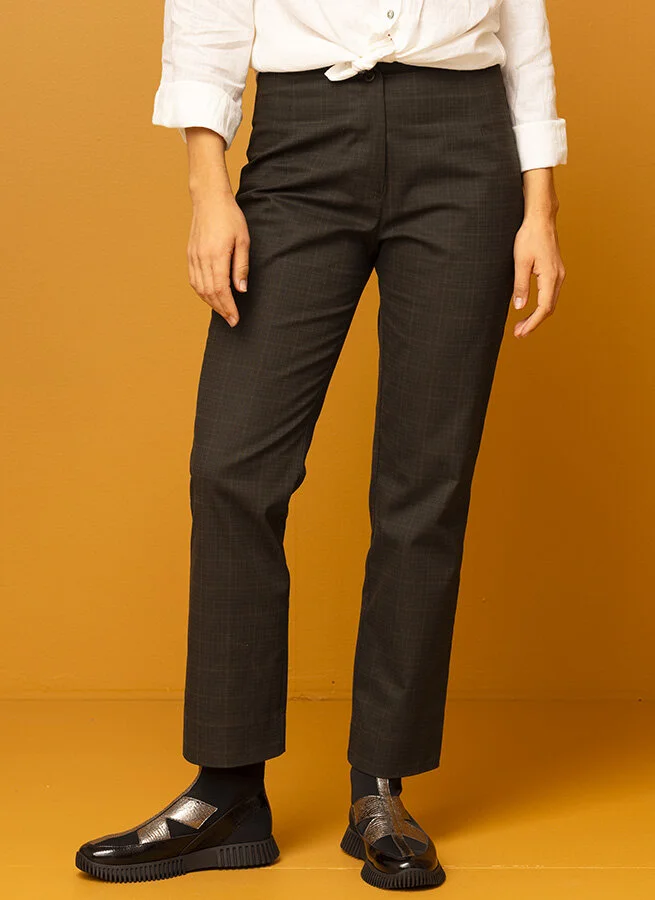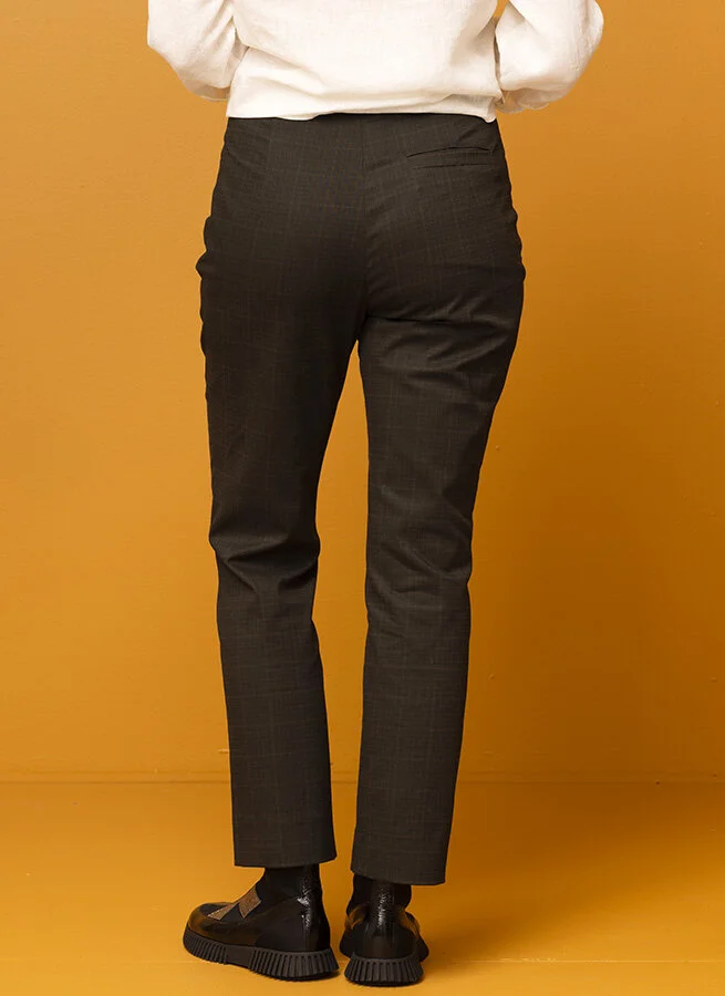 Smal, aningen kortare bomullsbyxa med skön stretch. Gylf fram och stolpficka bak. Matcha gärna med kavajen Fiolina i samma färg och kvliaté.