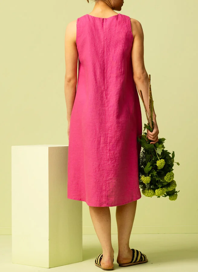 Klänningen består av 100% vävt lin, ett fantastiskt naturligt och miljövänligt material som låter din kropp andas. Linet har också en vacker lyster och oregelbundenhet i sin väv och blir bara vackrare och vackrare med tiden. Plagget har förtvättats och därigenom också förkrympts.