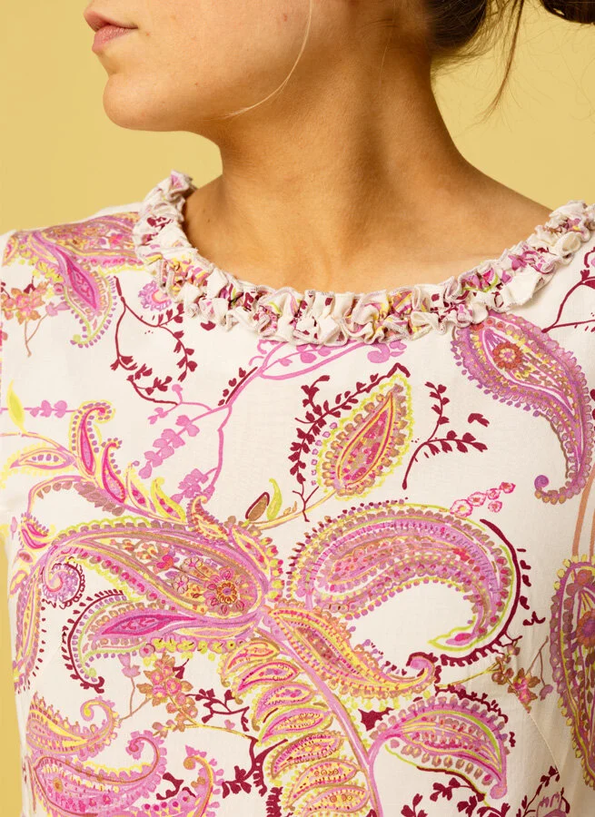 Plagget är tillverkat av 100% viskos i en kvalité som ger ett lätt, fint fall. Viskos är ett naturmaterial tillverkat av cellulosa från gran eller andra träd.