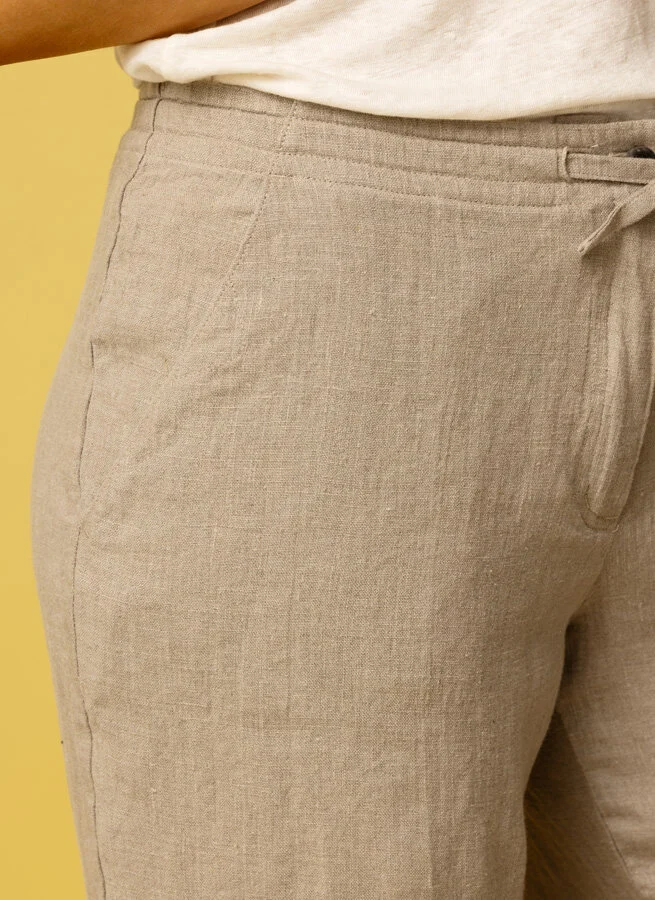 Linnebyxa med fickor i sidorna och knytband i midjan.