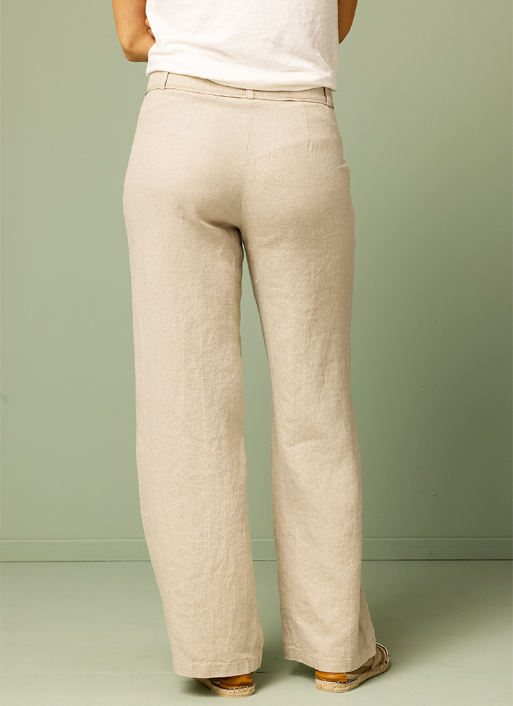 Naturfärgad linnebyxa i rak form med fickor i sidorna.