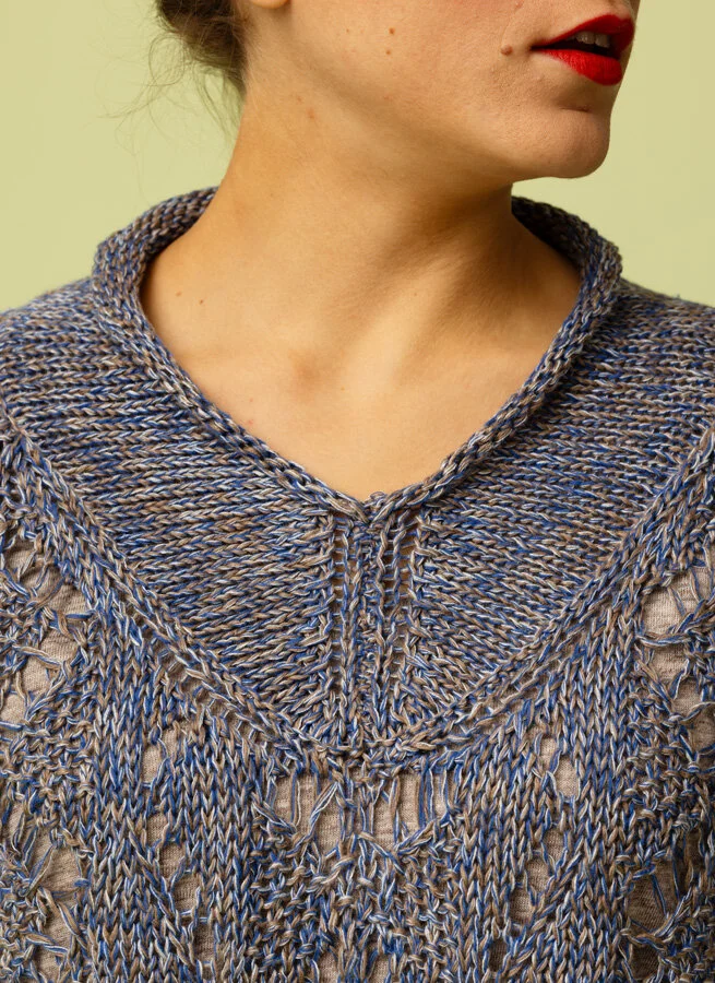Plagget är stickat i en blandning av lin och bomull, två sköna naturmaterial som låter din kropp andas.