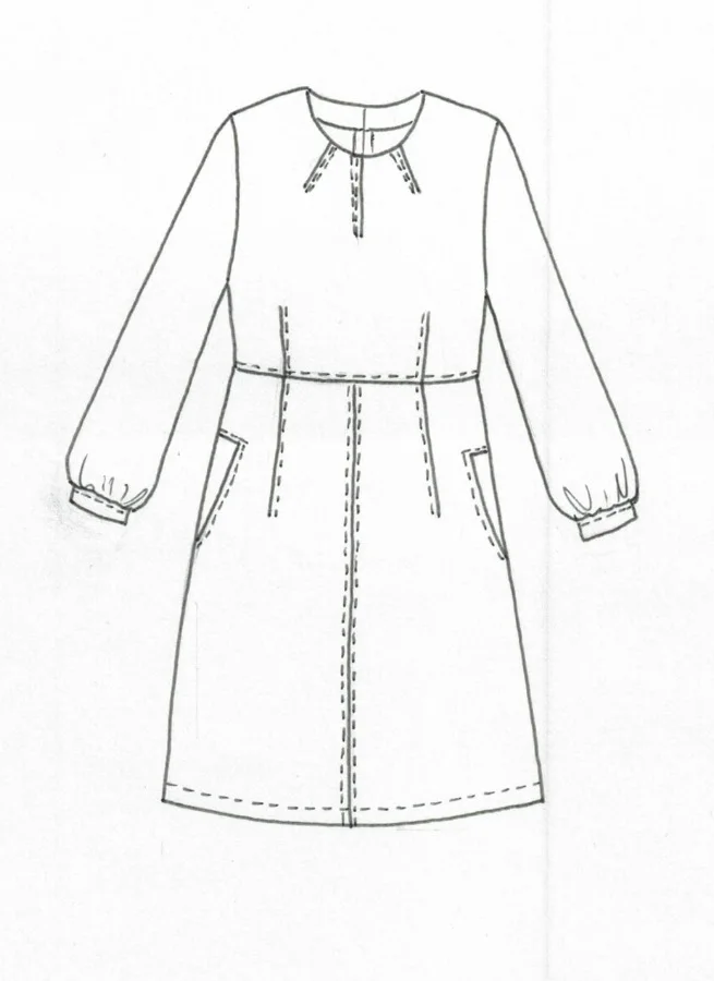 Långärmad festfin klänning i skimrande tyg. Fickor i sidorna, blixtlås bak.