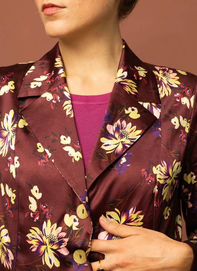 Klassiskt insvängd kavaj i härligt mönster. Observera att vi rekommenderar kemtvätt för denna kavaj.