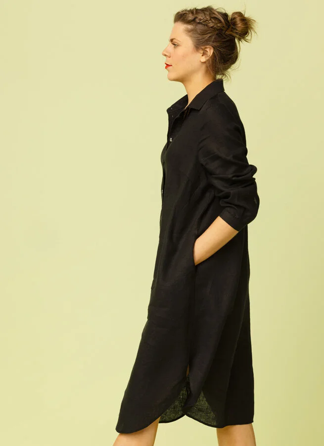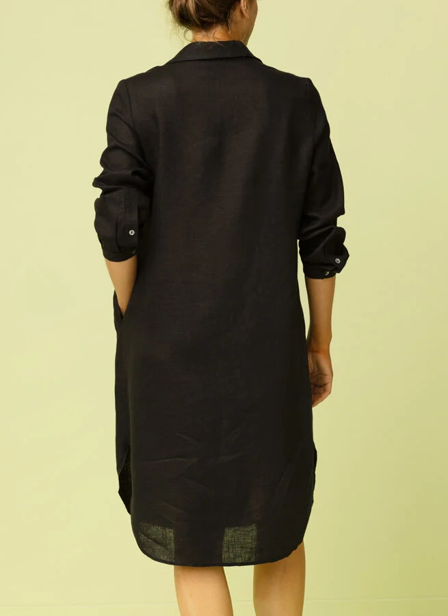 Lång, tunn linneskjorta med fickor i sidorna. En sval, skön sommarskjorta för varma dagar.