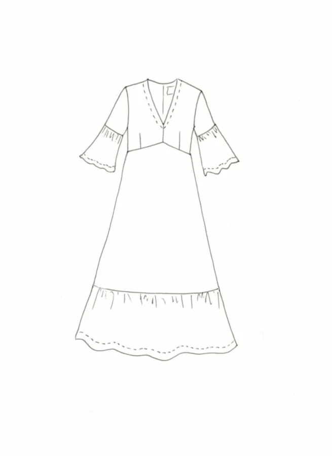 Klänningen består av 100% vävt lin, ett fantastiskt naturligt och miljövänligt material som låter din kropp andas. Linet har också en vacker lyster och oregelbundenhet i sin väv och blir bara vackrare och vackrare med tiden. Plagget har förtvättats och därigenom också förkrympts.