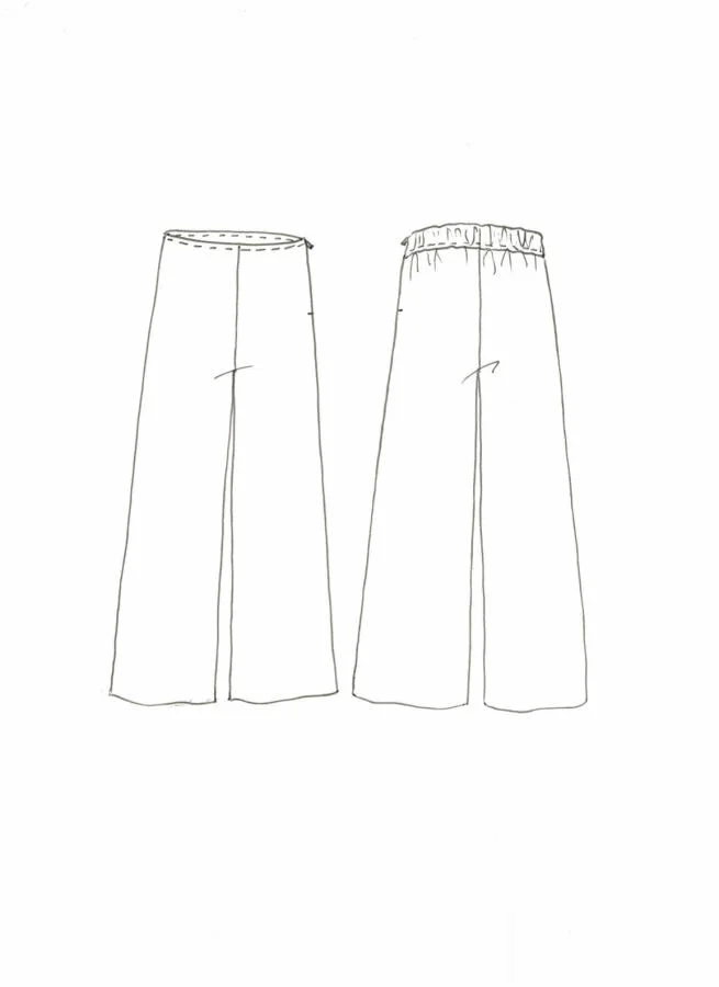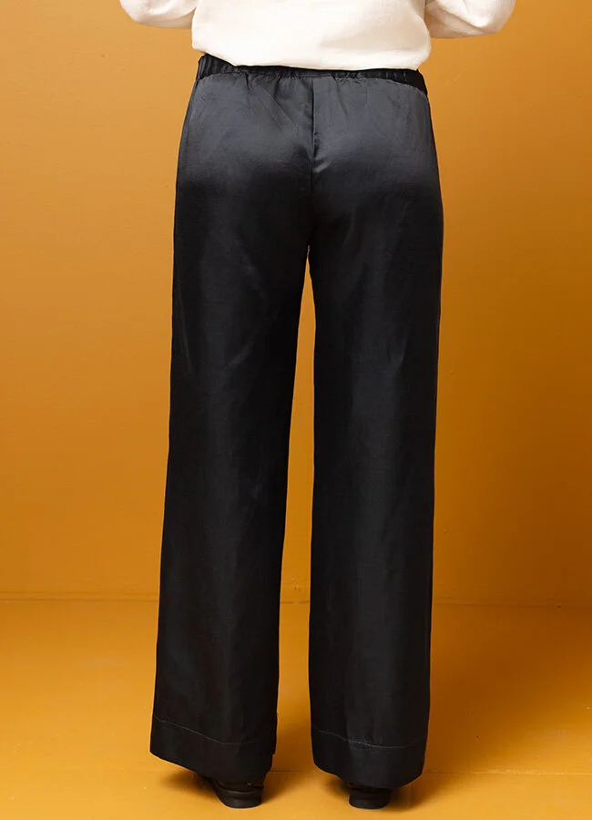 Vid festbyxa i glansig viskos. Resår bak i midjan för fin passform och blixtlås i sidan.