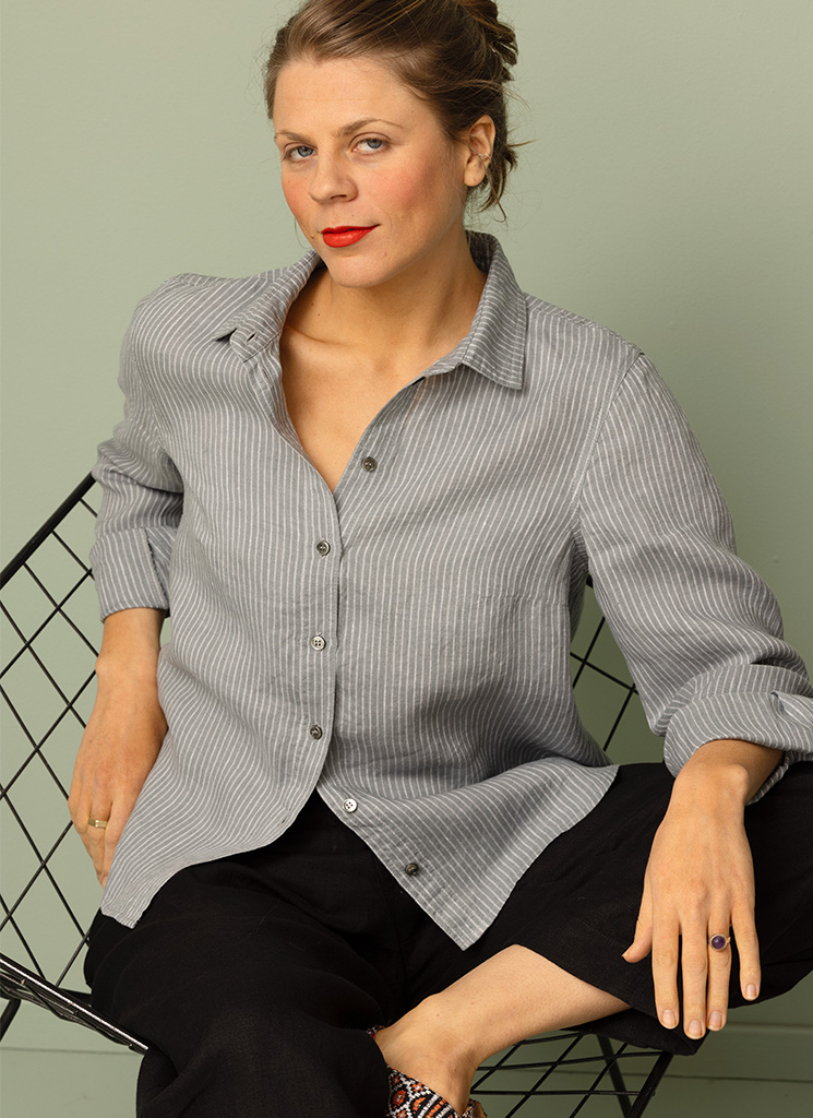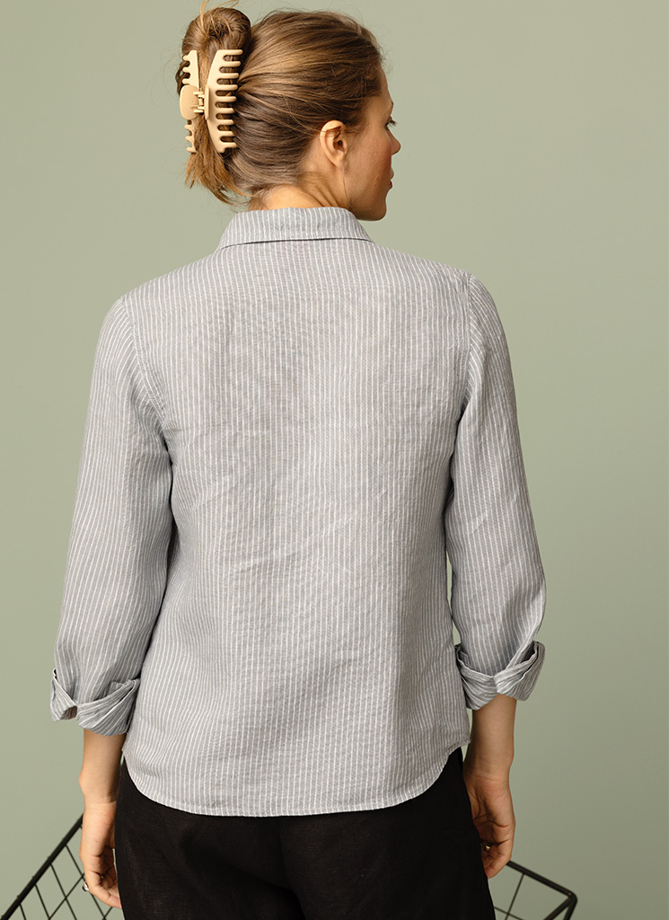 Klassisk linneskjorta i diskreta gråblå ränder.