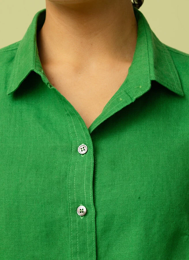 Skjortan består av 100% vävt lin, ett fantastiskt naturligt och miljövänligt material som låter din kropp andas. Linet har också en vacker lyster och oregelbundenhet i sin väv och blir bara vackrare och vackrare med tiden. Plagget har förtvättats och därigenom också förkrympts.