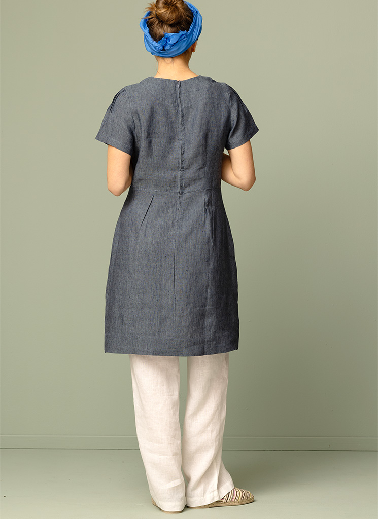 Klänningen består av 100% vävt lin, ett fantastiskt naturligt och miljövänligt material som låter din kropp andas. Linet har också en vacker lyster och oregelbundenhet i sin väv och blir bara vackrare och vackrare med tiden. Plagget har förtvättats och därigenom också förkrympts.