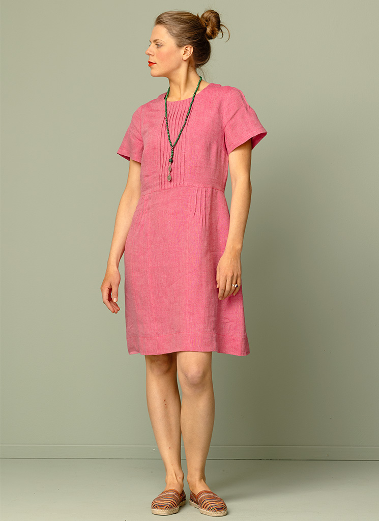 Klänningen består av 100% vävt lin, ett fantastiskt naturligt och miljövänligt material som låter din kropp andas. Linet har också en vacker lyster och oregelbundenhet i sin väv och blir bara vackrare och vackrare med tiden. Plagget har förtvättats och därigenom också förkrympts.