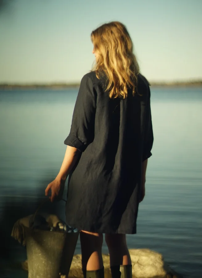 Skjortan består av 100% vävt lin, ett fantastiskt naturligt och miljövänligt material som låter din kropp andas. Linet har också en vacker lyster och oregelbundenhet i sin väv och blir bara vackrare och vackrare med tiden. Plagget har förtvättats och därigenom också förkrympts.