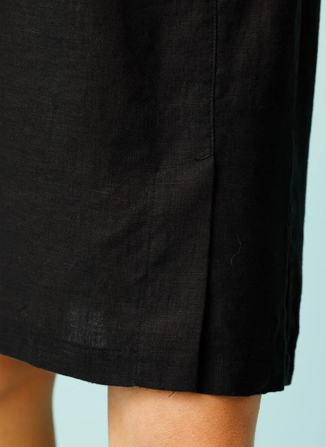 Linne har självrenande fibrer och för att minska vår miljöpåverkan rekommenderar vi vädring i första hand. För att släta ut eventuella veck kan du spraya lite vatten på området innan vädringen. När det väl är dags tvättar du din klänning i 40 grader i maskin, gärna utan mjukmedel. Det är mest skonsamt för både ditt plagg och för miljön.