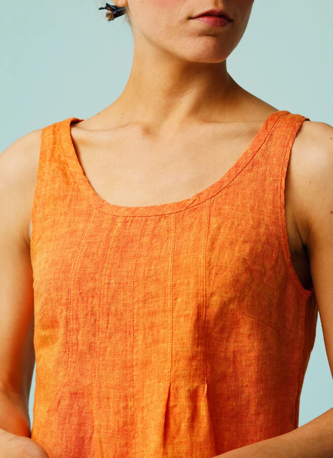Plagget består av 100% vävt lin, ett fantastiskt naturligt och miljövänligt material som låter din kropp andas. Linet har också en vacker lyster och oregelbundenhet i sin väv och blir bara vackrare och vackrare med tiden. Plagget har förtvättats och därigenom också förkrympts.