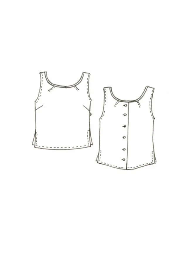 Kort mönstrat linne med dekorativ knapprad bak. Små slitsar i sidorna samt blixtlås i sidan.