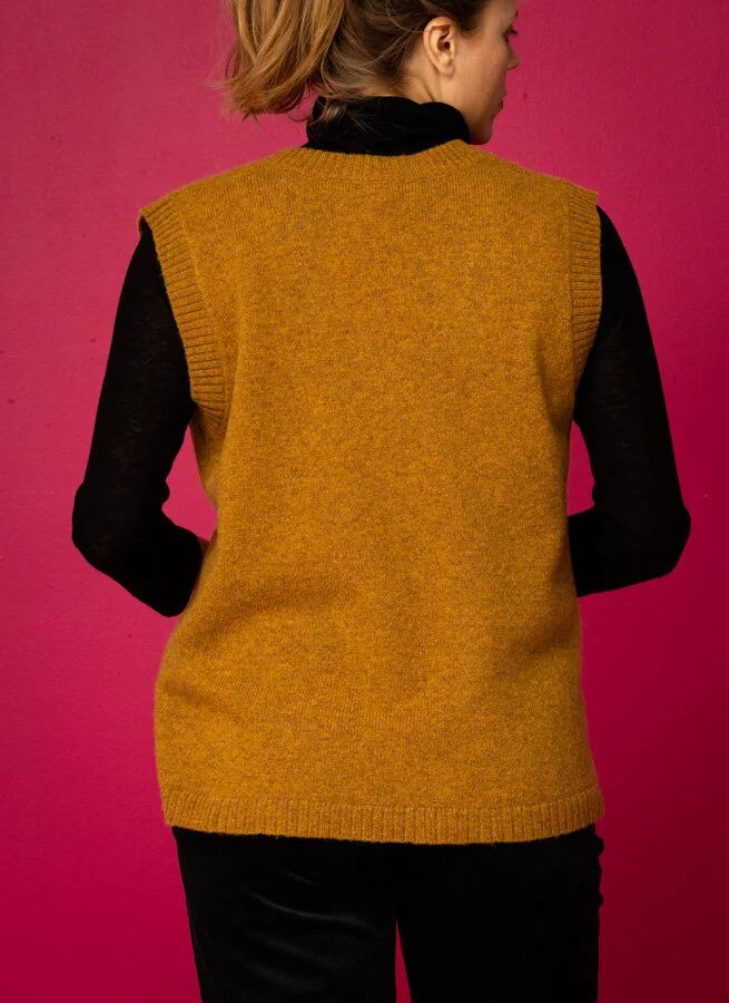 Gul V-ringad slipover stickad i återvunnen ull.