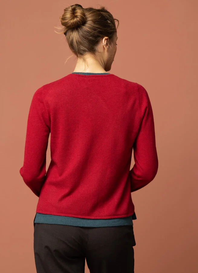 Nätt ullkofta i något insvängd form. Rundhalsad och med hellång ärm gör den här koftan oumbärlig i sin mjuka Merinoull.