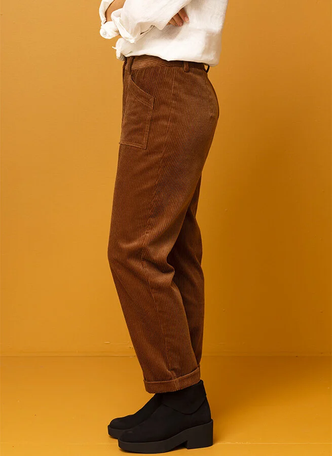 Byxan är tillverkad i en bredspårig manchester av 100% bomull. Tillverkningen sker hos ett litet familjeföretag i Litauen som vi arbetat med sedan många år tillbaka. Tyget kommer från Portugal.