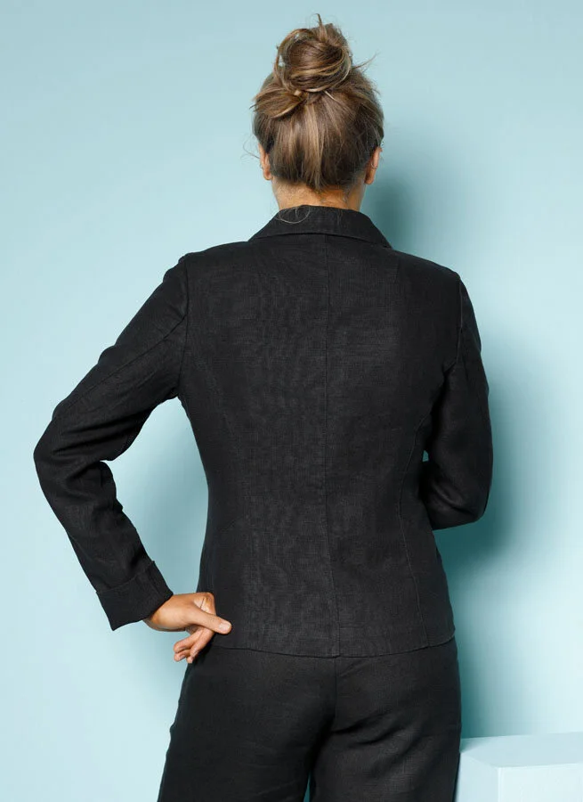 Paulina är en omtyckt linnekavaj med fin figursydd passform och avtagbara axelvaddar.