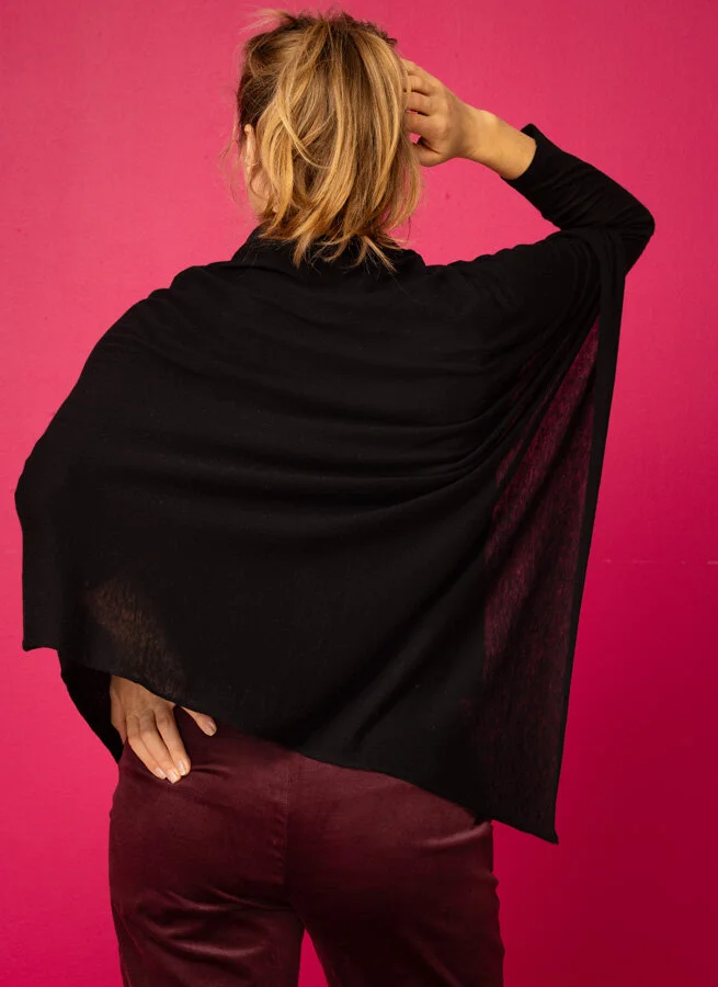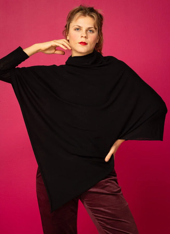 Svart poncho i tunn merinoull.