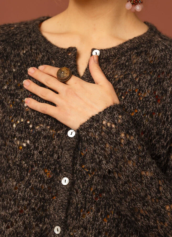 Spetsstickad, rundhalsad kofta i en fantastiskt lyxig blandning av cashmere och silke.