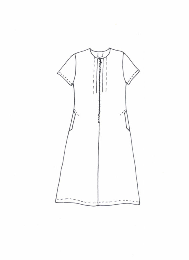 Klänningen består av 100% vävt lin, ett fantastiskt naturligt och miljövänligt material som låter din kropp andas. Linet har också en vacker lyster och oregelbundenhet i sin väv och blir bara vackrare och vackrare med tiden. Plagget har förtvättats och därigenom också förkrympts.