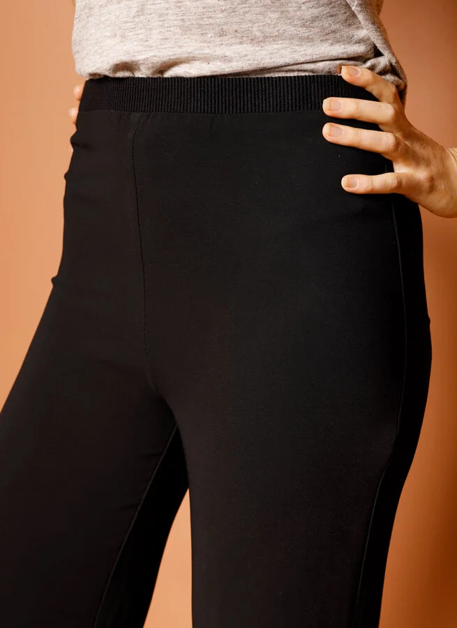 Slät svart byxa i viskos med skön stretch och resår i midjan för bästa passform.