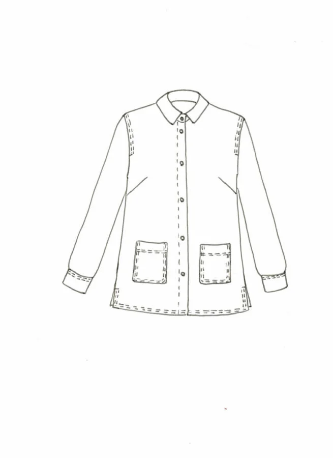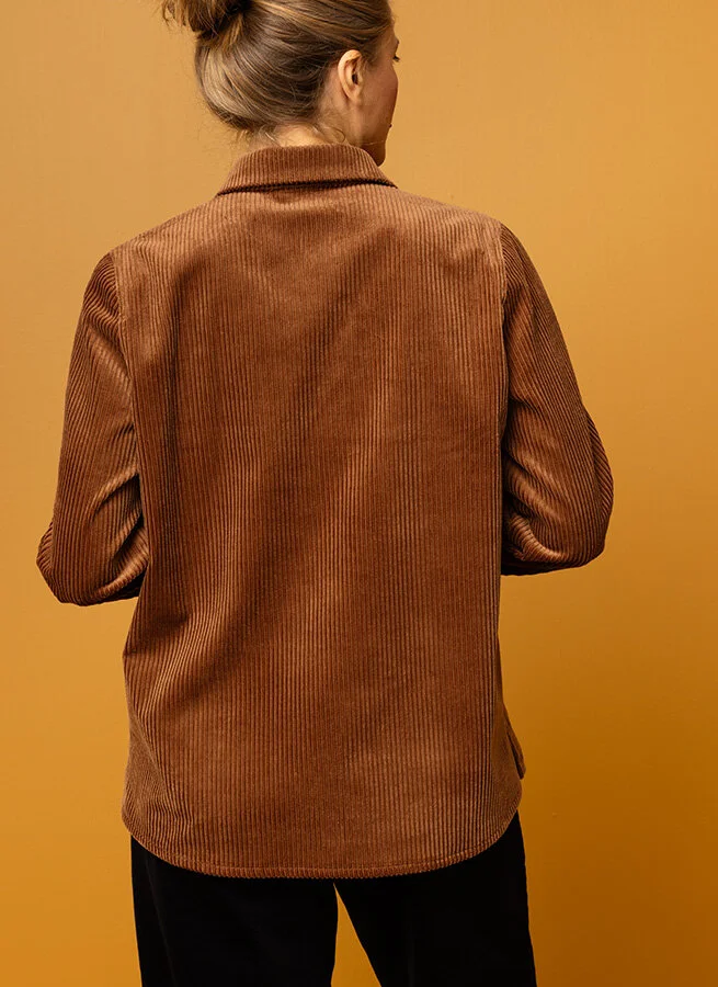 Ledig manchesterskjorta med utanpåfickor fram och små slitsar i sidorna.