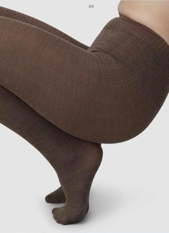 Varma fiskbensmönstrade strumpbyxor med RWS certifierad merinoull från Swedish Stockings.
