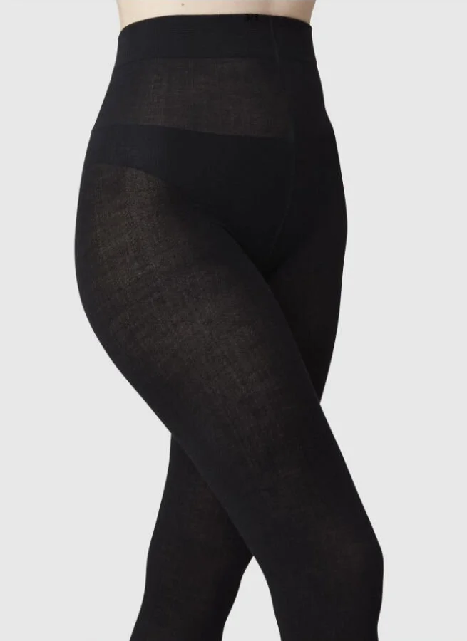 Varma fiskbensmönstrade strumpbyxor med RWS certifierad merinoull från Swedish Stockings.